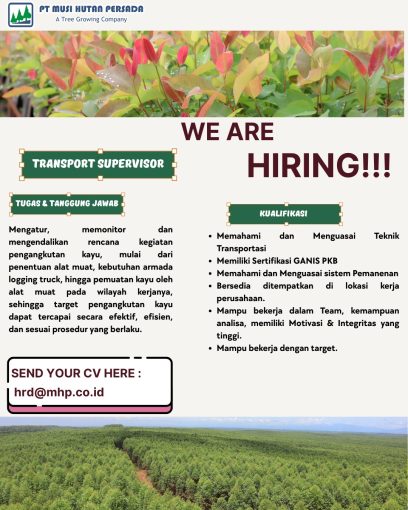 Informasi Kerja di PT Musi Hutan Persada INFORMASI KERJA KEHUTANAN 29 August 2025, 09.49 Oleh: admin 0